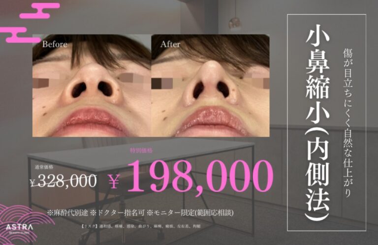 きょむこ様先日は当院にご来院いただき、また温かいご感想をお寄せいただきまして誠にありがとうございます。施術前のカウンセリングでは、どのような点が気になっていらっしゃるのか、また“こうなりたくない”というお気持ちまで丁寧に共有いただけたことで、より安心して施術に臨んでいただけたのではないかと存じます。当院が大切にしているのは、“患者様にとって本当に必要な施術だけをご提案すること”です。その姿勢をご評価いただけたことを心から嬉しく思います。施術から1か月経過し、自然で違和感のない仕上がりにご満足いただけていること、また経過も順調とのこと、大変安心いたしました。これからさらに落ち着いていく中で、より理想的なお姿を実感していただけることと思います。今後もASTRA BEAUTY CLINICでは、患者様の声に耳を傾けながら、美しさだけでなく安心と信頼をお届けできるようスタッフ一同精進してまいります。ぜひこれからもご不安やご希望がございましたら、どうぞお気軽にお声掛けくださいませ。気になっていた鼻の形も綺麗に整い満足しています。