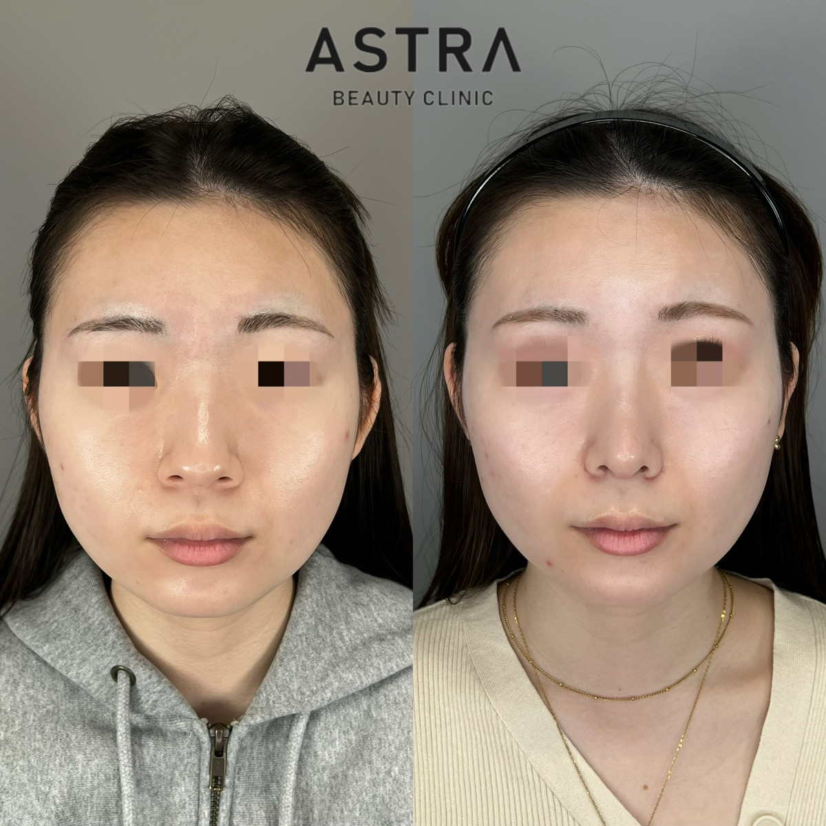 お顔全体のバランスを考え、どの角度から見ても洗練された印象となるよう、複合的なアプローチで施術を実施。