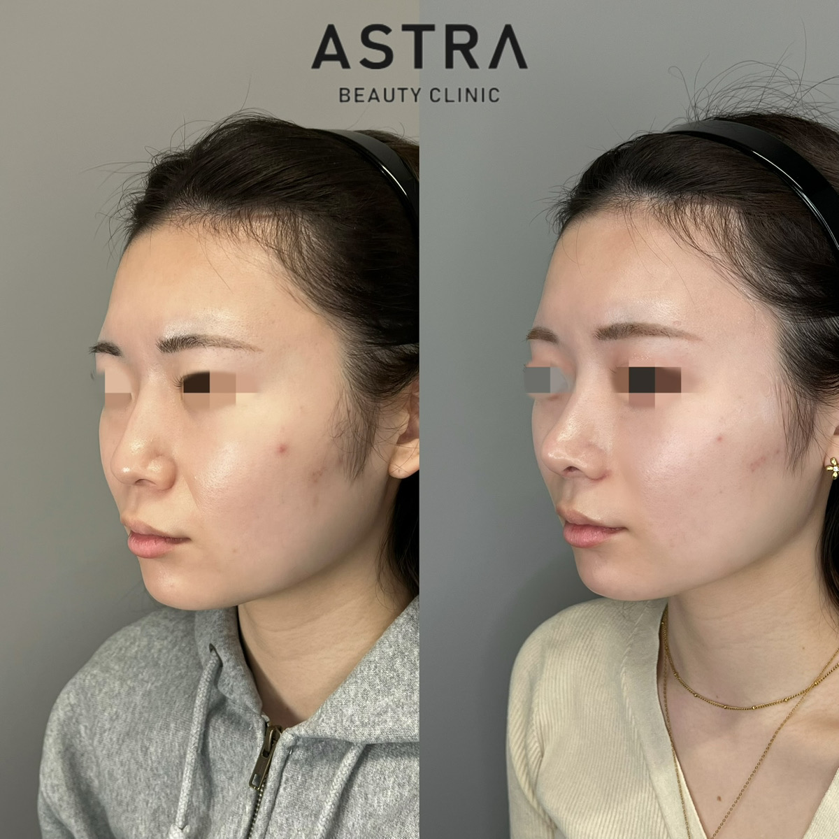 また、貴族部のボリュームを適切に補うことで、中顔面の立体感が生まれ、横顔の印象にもやわらかさと上品さが加わりました。